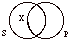 Some S are P: The X indicates that at least one member lies within the zone that represents members of both S and P. The remaining members of S or P may or may not lie within this zone.